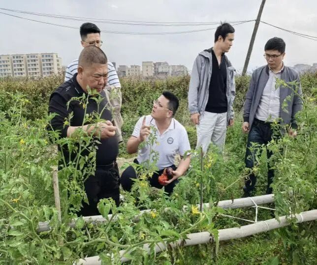 在汕头市鑫雄种植有限公司水稻和蔬菜种植基地,公司负责人周昭雄介绍了再生稻育秧、“天使之吻”新品种番茄的生长情况,冬种马铃薯销售以及现代农业产业园区的规划建设等情况。陈青春副教授指出,要加强田间管理,做好新品种番茄的采摘销售及秧田管理工作,建议对现代农业产业园区的规划建设,要步步为营,积极对接市场,做好农文旅融合发展的新篇章。