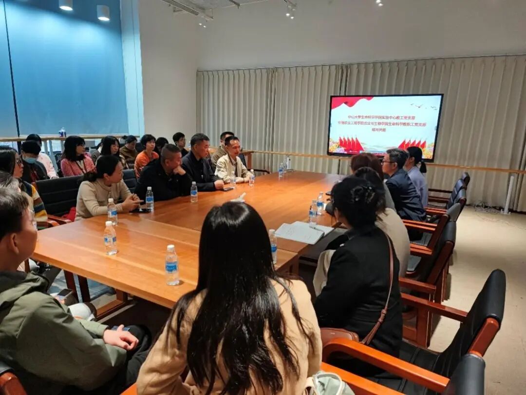 为深入学习贯彻习近平新时代中国特色社会主义思想,推动党建与业务深度融合,2025年12月29日,农业与生物学院生命科学教工党支部赴中山大学南校园,与生命科学学院实验中心党支部联合开展“支部共建、平台互鉴、协同育人”主题党日活动。农业与生物学院生命科学教工党支部书记唐辉武、中山大学生命科学学院实验中心党支部书记陈云凤、副主任何键及双方党员、骨干教师近 40 人参加。