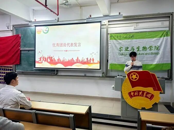 宣誓结束后,新团员代表谭笑儒分享了对团员身份的理解,作出勤奋学习、坚定信念、担当奉献的三点承诺,号召全体新团员以实际行动诠释使命担当;接着,优秀团员代表温泽霖结合自身经历,分享了专业钻研与理论实践中的成长收获,勉励新团员以专业对接时代需求,在科研与奉献中践行初心。