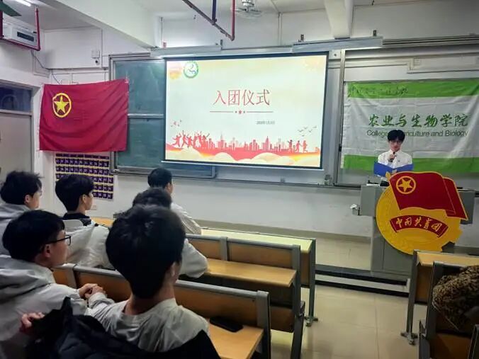 为深入学习习近平总书记关于青年工作的重要思想,夯实共青团组织基础,引导广大青年坚定理想信念、勇担时代使命,1月3日晚上,农业与生物学院在白云校区综合楼402室举行新团员入团仪式。参加本次仪式的有农业与生物学院团委副书记梁定超,2025年新发展团员、团员代表。入团仪式由团委学生副书记陈煜轩主持。