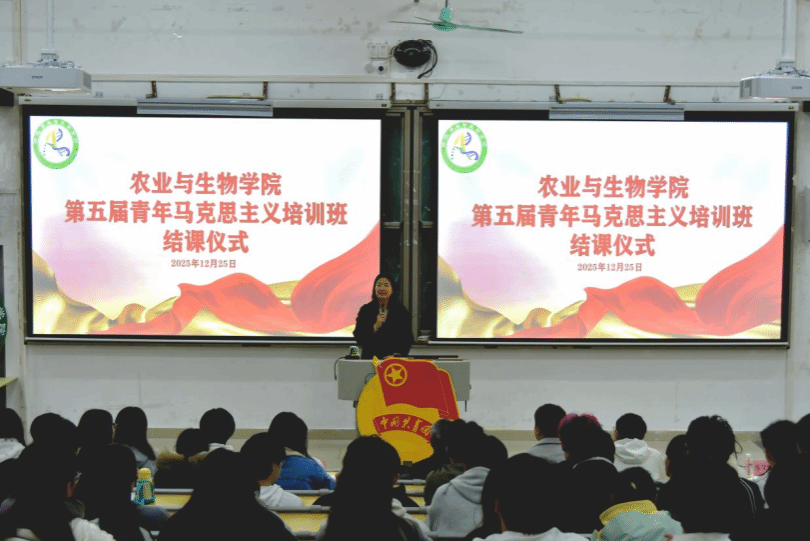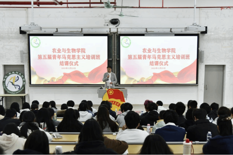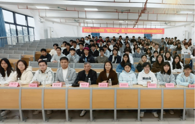 为深入学习贯彻党的二十届四中全会精神,筑牢青年学子理想信念根基,引导学院学子将个人成长融入国家发展大局,12月25日下午,农业与生物学院2025年“青马工程”暨入党积极分子培训班结班仪式在白云校区综合楼D2小礼堂顺利举行。参加本次活动的有校关工委常务副主任曾学龙,农业与生物学院党委副书记张金凤,团委副书记梁定超及培训班全体学员。