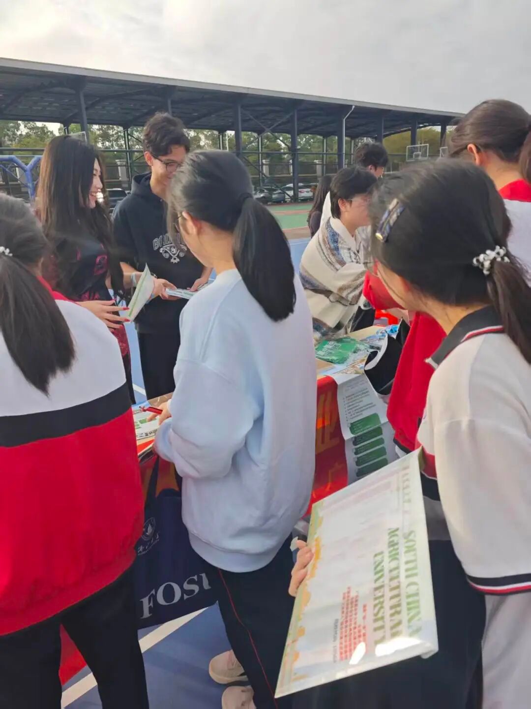 我校为本次活动精心筹备了笔袋、笔记本等实用学习用品及校园文创周边,丰富的礼品吸引众多学子驻足了解,宣讲点位现场气氛热烈。寒招志愿者分工协作、热情服务,以通俗易懂的语言向学子系统介绍我校办学历史、优势专业、培养体系与校园文化,引导学子翻阅招生简章、积极互动提问,让学子在轻松的氛围中加深对我校的了解,深刻体会“注重实践、扶助农工”的办学精神,也为其升学规划提供实用参考。