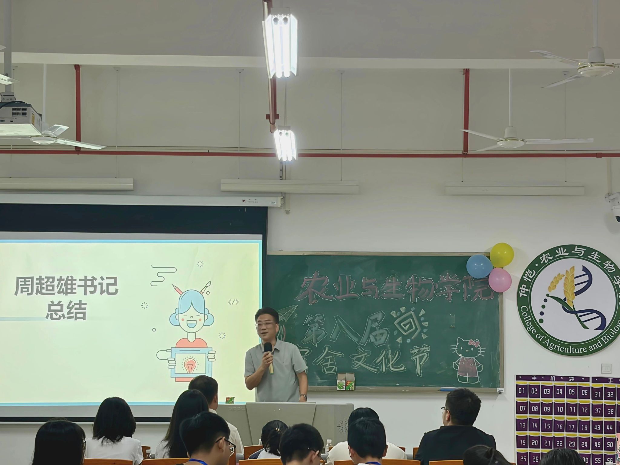 为丰富校园文化生活,打造温暖和谐的宿舍氛围,展现仲园学子的青春风采,4月21日晚上,农业与生物学院第八届宿舍文化节决赛于白云校区生命科学大楼A座511顺利举办。农业与生物学院党委书记周超雄,辅导员梁定超,农业与生物学院团委学生副书记、学生会主席和融媒中心主任团作为嘉宾出席本次活动。