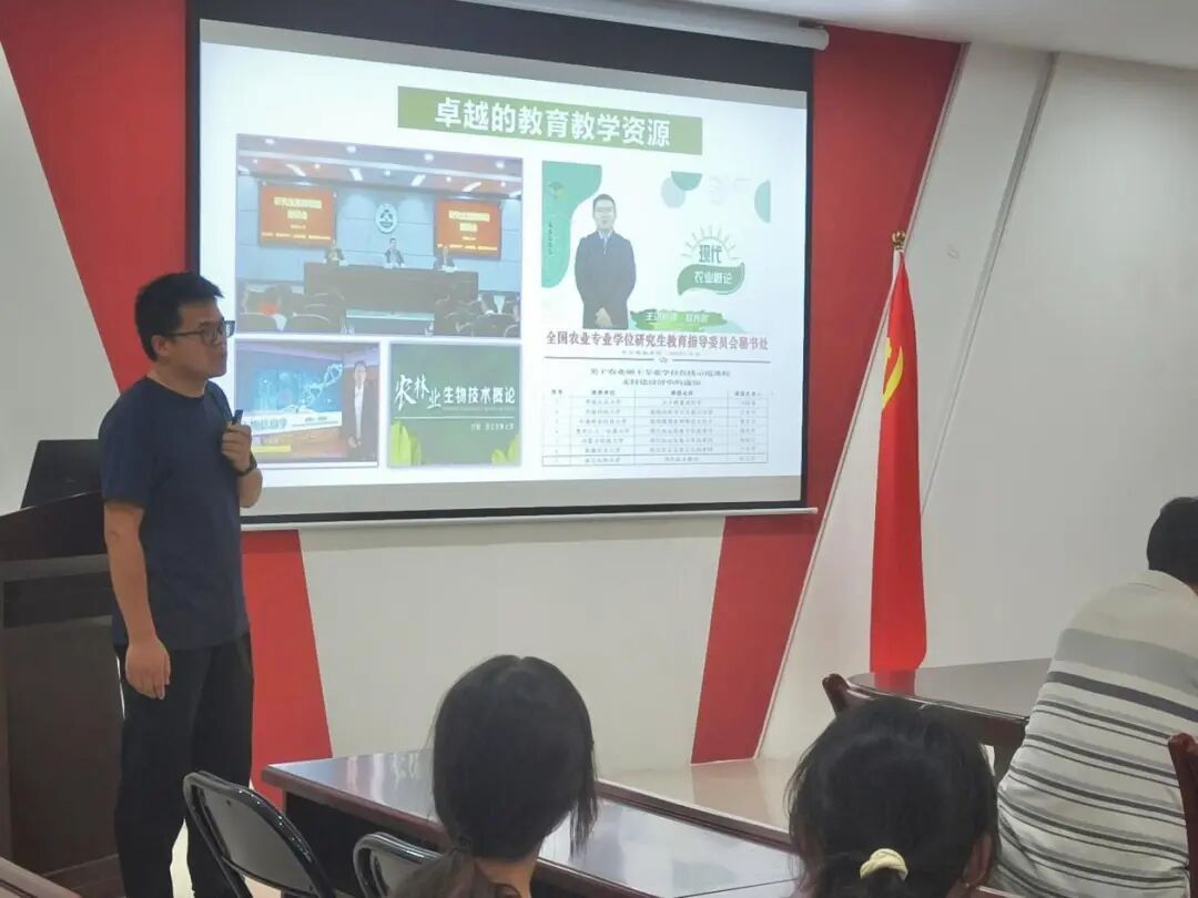 在学科介绍环节,胡鑫老师以清晰的逻辑、详实的数据,系统解读了作物学科的综合实力。他不仅介绍了学科汇聚的高水平师资队伍,还展示了配备先进设备的科研平台,更通过毕业生就业率、就业质量等具体成果,直观呈现了学科的人才培养成效。尹晓辉老师则聚焦植物保护学科,重点分享了该学科在病虫害绿色防控、生物防治等前沿方向的研究特色,同时结合毕业生在科研机构、农业企业等领域的发展案例,让同学们对学科前景有了更直观的认识。