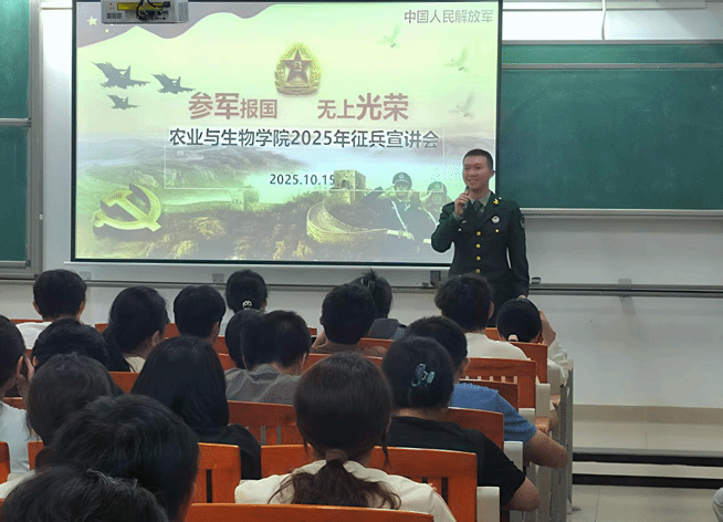 此次宣讲会不仅搭建起征兵政策与农生学子间的沟通桥梁,让各项征兵政策、报名流程清晰直达学生内心,更以鲜活的军营故事点燃了大家的家国情怀。现场气氛热烈,多名学生在会后主动咨询细节,纷纷表示将认真考量报名事宜,愿携青春热血,以实际行动践行新时代青年的报国之志。