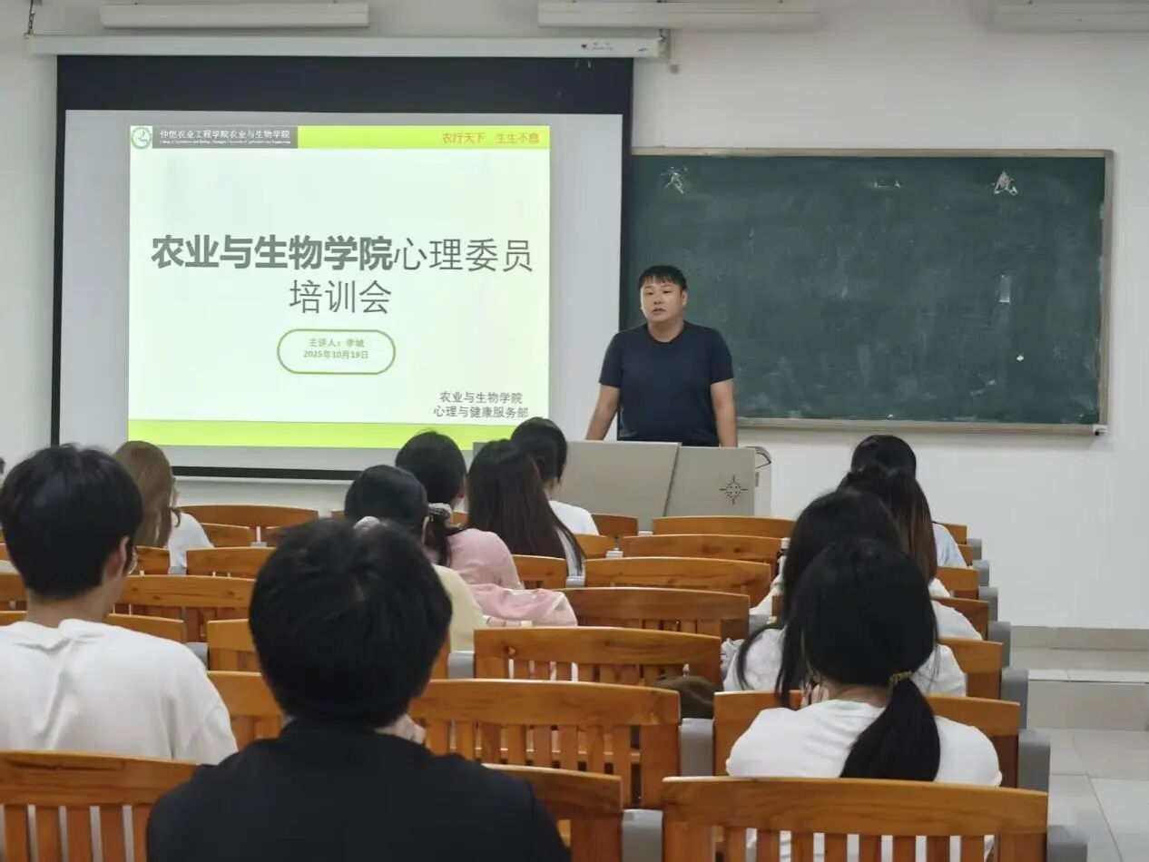 为筑牢校园心理健康防线,提升班级心理委员的专业素养与服务能力,10月19日下午,农业与生物学院于生命科学大楼A座511室召开心理委员培训会,学院辅导员李城以及各班级心理委员参加本次培训会。培训会由李城主持。