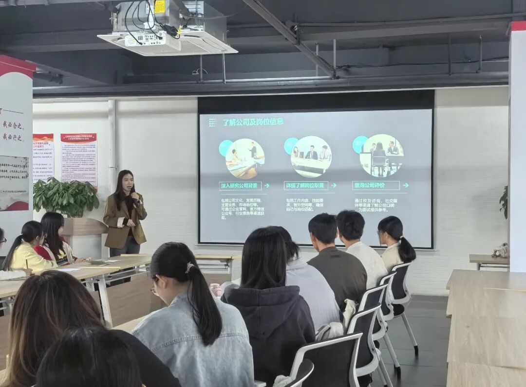 接着,钟淑婷建议学生在面试前,务必深入了解公司业务与目标岗位要求,同时准备好简历、获奖证明等材料;面试过程中要保持自信从容,展现真实自我,避免套用生硬模板;面试结束后需及时复盘表现,并主动跟进求职进度。此外,还现场解答了学生关于岗位需求、薪资福利等疑问,详细说明后续招聘流程,提醒大家尽快通过官方渠道投递简历,为求职做好充分准备。