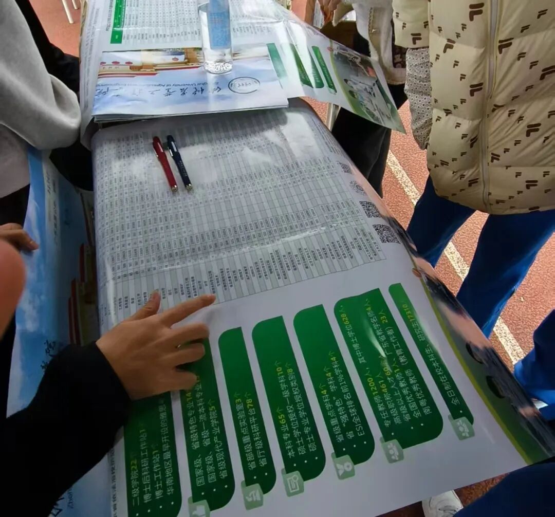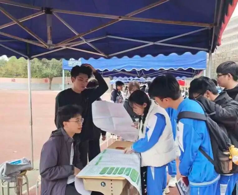 活动当日,领队与校方对接,确认场地细节。组织队员迅速搭建摊位,摆放宣传手册及礼品。开幕式后师生们积极参与活动,热情向各高校咨询,队员们按照分工合作的方式,其中“宣讲组”循环讲解本校的办学理念、优势专业、近年录取分数线及报考政策,结合自身求学经历分享学习心得,为对未来感到比较迷茫的学子给与一条参考建议;“物料组”主动向路过的师生发放宣传页;“互动组”同步登记意向学生的访谈问题。