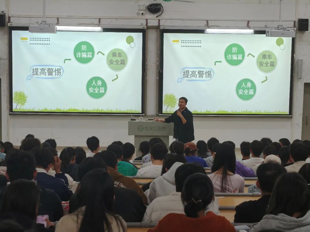 同时,梁定超从个人成长、国防教育、个人安全三大维度为同学们提出三点希望。在个人成长方面,他倡导做好学习与发展规划,培养早起、锻炼等良好习惯,学会独处、勇于克服成长中的恐惧,对自身人生发展负责;在国防教育方面,他结合国际时事案例阐释国防安全的重要意义,普及大学生服兵役相关政策,鼓励身体条件符合的同学参军报国,强调农生学子明辨是非,保守国家秘密,坚决杜绝泄露国家机密的行为;在个人安全方面,他提醒同学们增强安全防范意识,做好宿舍防盗、防电信诈骗工作,妥善保管贵重物品,筑牢校园安全防线。