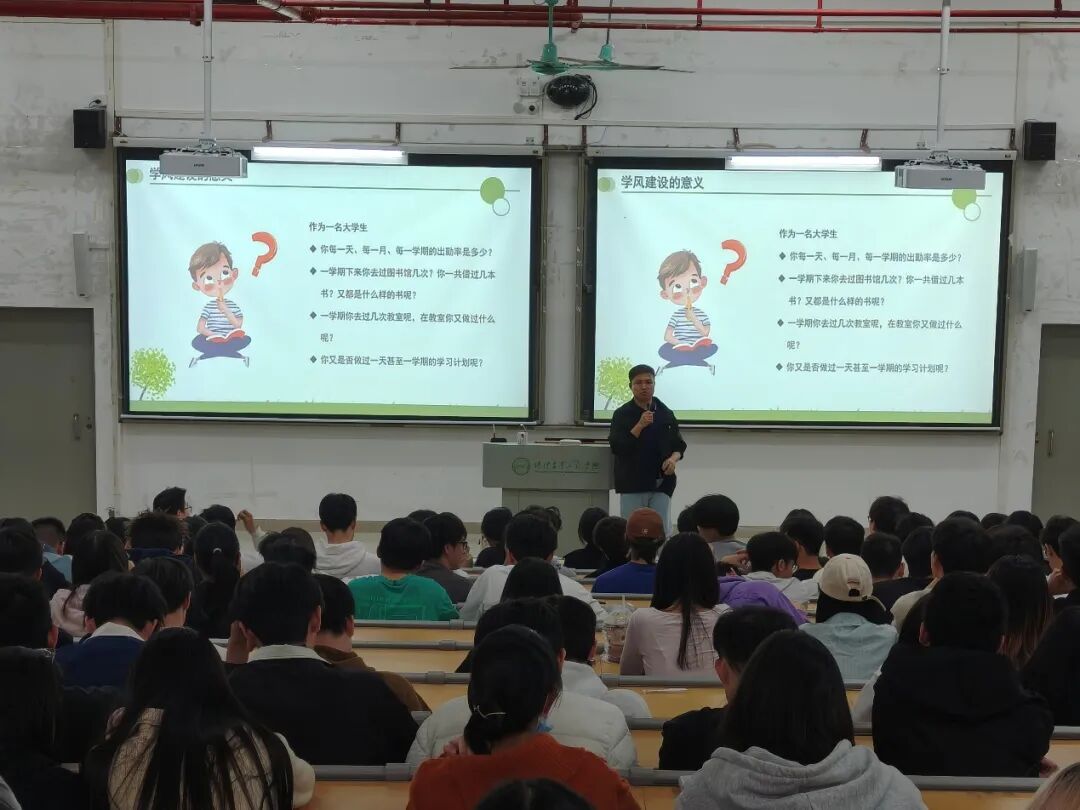 在学风建设方面,梁定超督促同学们遵守课堂纪律,提前到课、准时出勤,杜绝上课睡觉、迟到早退等不良行为;针对存在挂科情况的同学,要求其正视学业短板,尽快制定补考备考计划,及时填补学业漏洞。他还呼吁各班班委主动作为,积极探索学风建设新路径,营造比学赶超、勤学善思的优良班级学风。