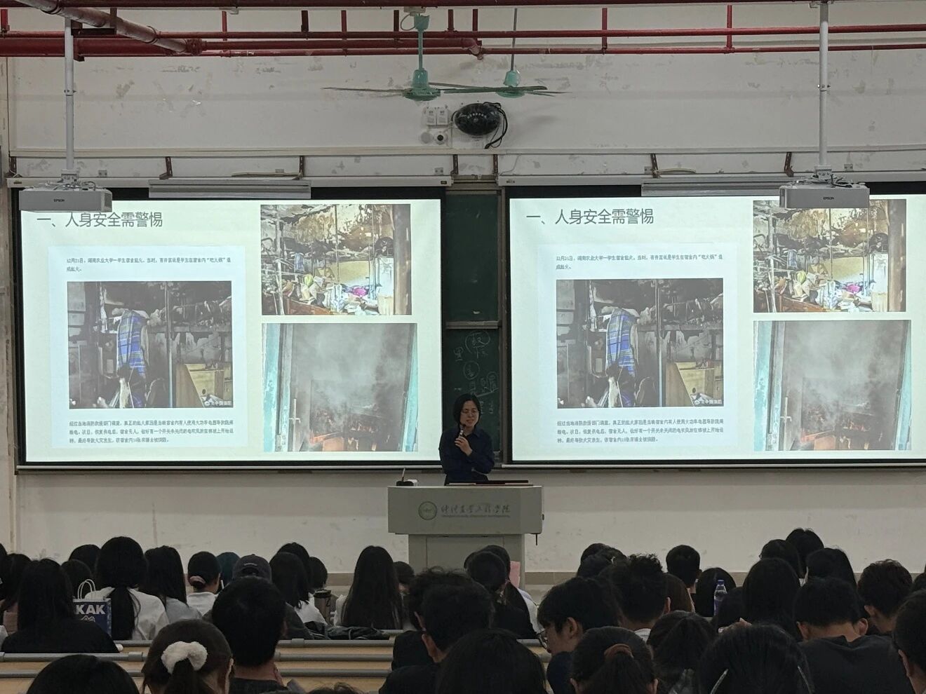 此外,孙晓芳就校园日常安全事项进行重点强调与细致叮嘱:一是筑牢人身安全防线,结合真实案例提醒同学们杜绝使用违规电器,严防火灾等安全事故发生;二是规范网络言行表达,倡导以理智、包容、公正的态度面对网络舆论,做到不造谣、不传谣,既不伤害他人,也守护自身网络形象;三是提高网络诈骗防范意识,逐一拆解冒充公检法、网络购物诈骗、盗用QQ冒充好友借钱等校园常见诈骗手段的作案套路,叮嘱同学们时刻保持警惕,守好个人财产安全。