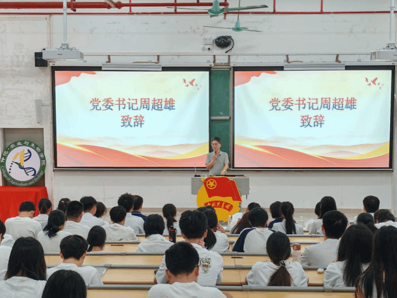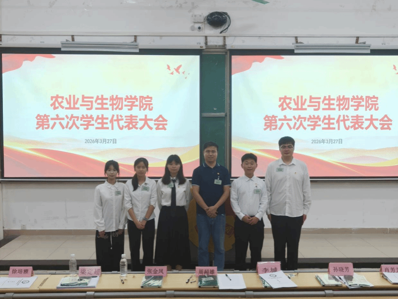 3月27日下午,农业与生物学院第六次学生代表大会在白云校区综合楼D2小礼堂隆重召开。农业与生物学院党委书记周超雄、党委副书记张金凤,辅导员孙晓芳、李城、肖芳芳、梁定超及101位学生代表参加本次大会。