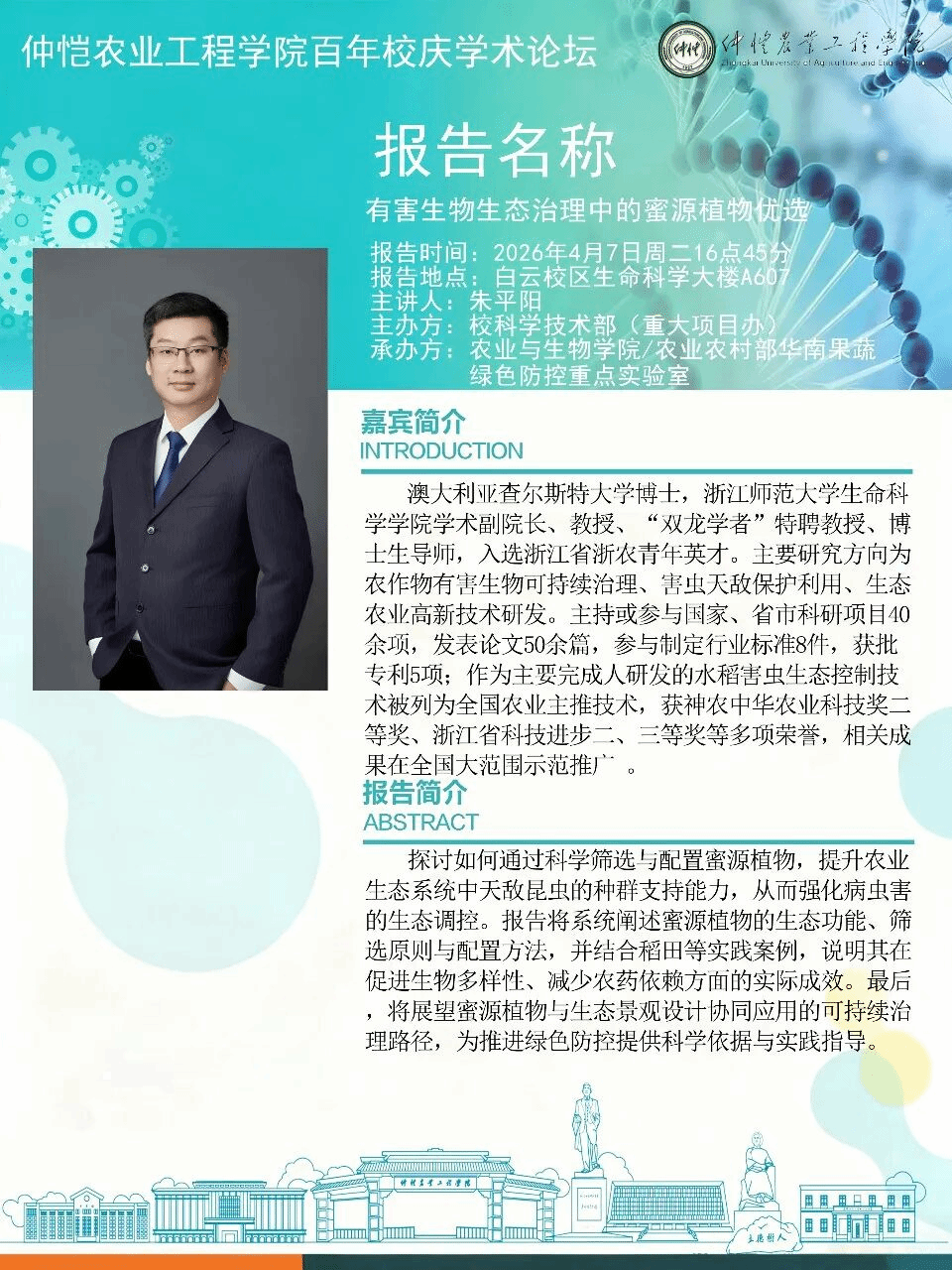 香广伦教授、朱平阳教授受邀来我院作专题讲座