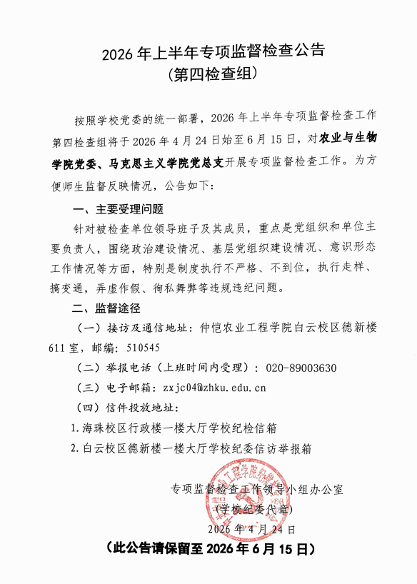 2026年上半年专项监督检查公告(第四检查组)