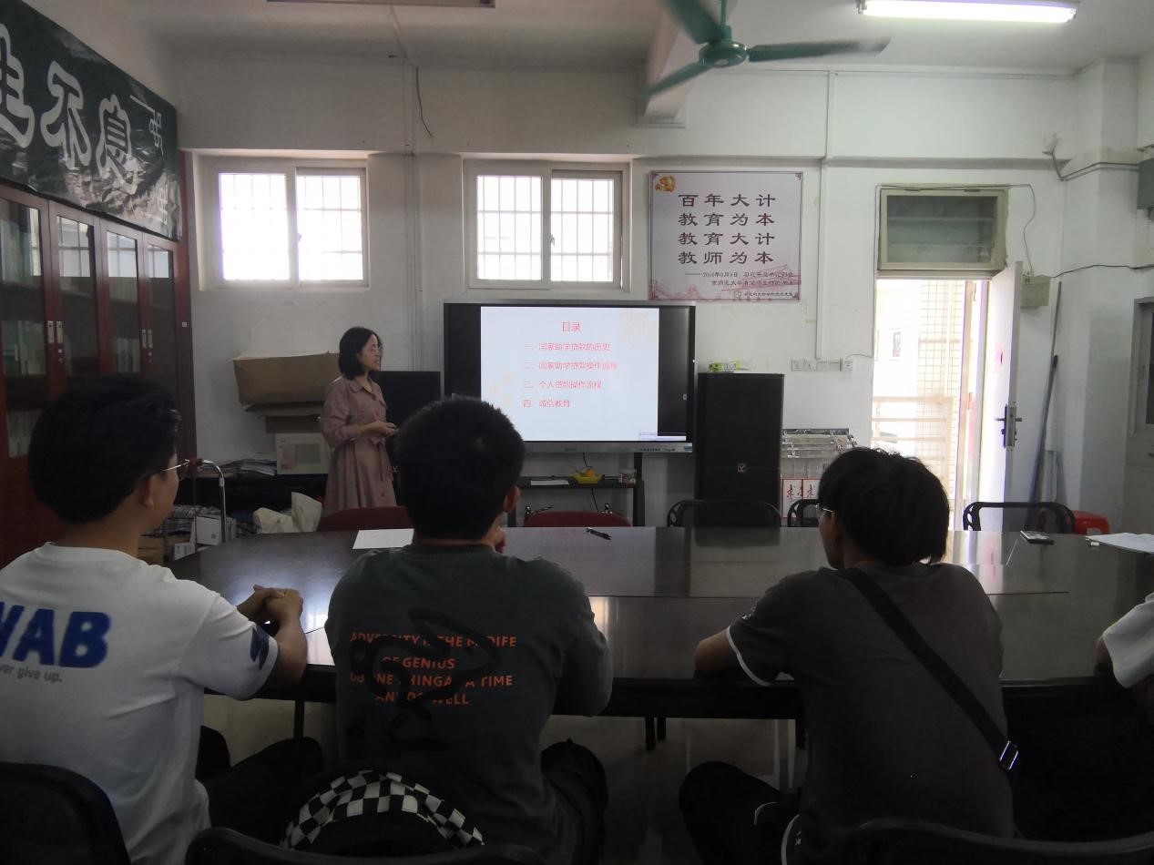 孙晓芳首先向贷款学生简要介绍国家助学贷款的政策。她指出,国家助学贷款为家庭经济困难学生搭建通往梦想的桥梁,让每一位贫困学生都能够进入大学学习。然后向贷款学生介绍了助学贷款操作流程及还款政策,重点强调了个人操作注意事项、提前还款、违约责任等三大问题。紧接着,孙晓芳向同学们举例说明不良贷款记录对贷款学生工作和生活各方面的危害,鼓励贷款学生提前还款。最后,她希望同学们讲诚信、知感恩,做新时代诚信青年!