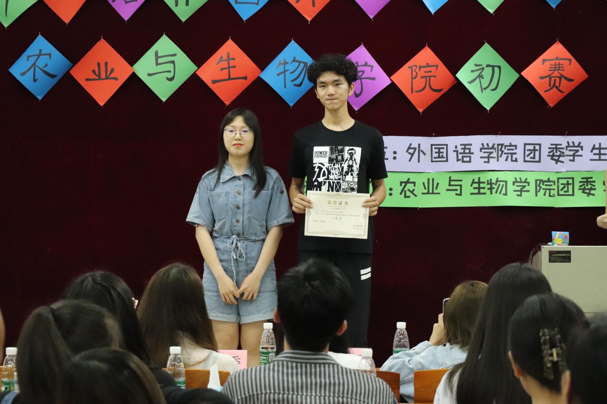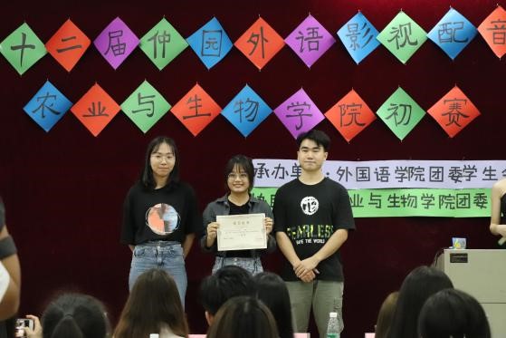 最后,工作人员对评委们的评分进行统计,推选出了本次大赛的前三名,第一名是three things队,第二名是配音天团对,第三名是瑞雪兆丰年队。本次比赛前两名的队伍将代表农业与生物学院参加第十二届仲园影视配音大赛复赛。