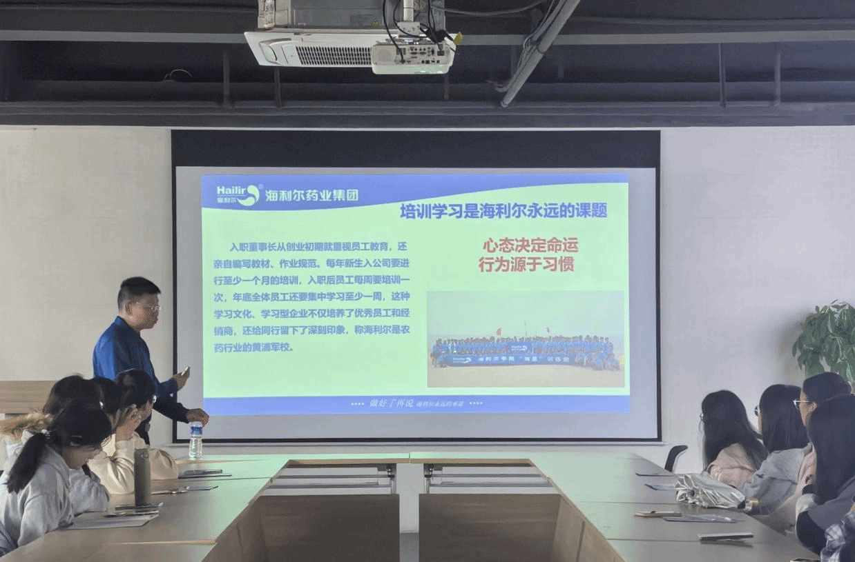 随后,赵国华结合自身8年从业经历补充分享,海利尔药业集团被誉为“农资界的黄埔军校”,内部拥有完善的培训体系与成熟的人才培养机制。他鼓励同学们,农业行业虽需要脚踏实地、吃苦耐劳,但能让人快速积累经验、锻炼综合能力,集团将为有意愿、有能力的员工提供广阔的职业发展空间与晋升渠道。